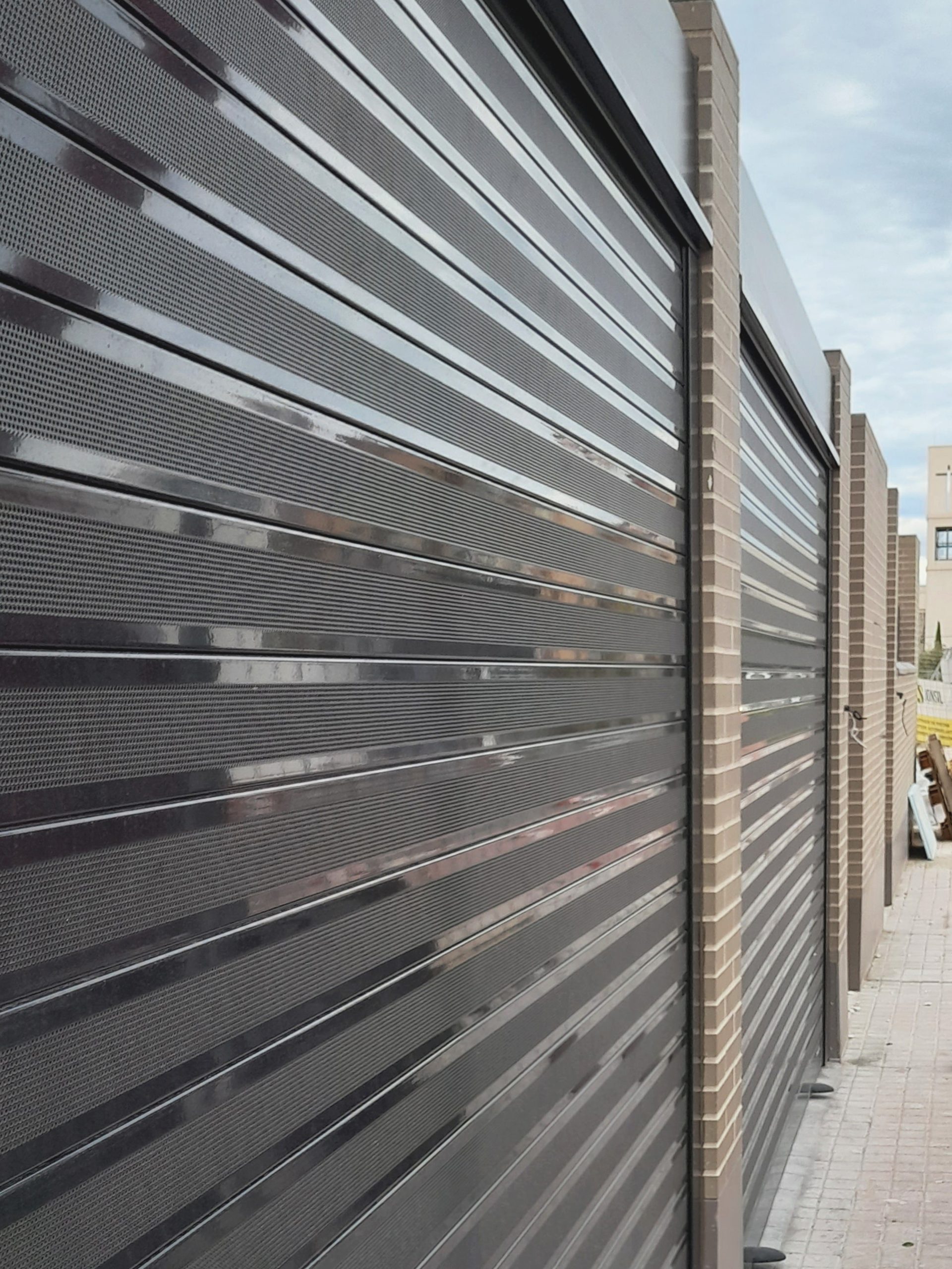 Roll-up door in extruded aluminum of high strength 6063-T5 alloy (Aluminum, Silicon, Magnesium and Titanium) from the brand PORTALUM Model XT-20. Made with straight design profiles and with single-wall geometry with its main measurements of 100×15.4 mm and its general thickness of 2 mm. The roll-up door is complemented by side nylon plugs that prevent movement between the slats and possible operating noises, a double-walled reinforced lower plinth with rubber weatherstripping for watertightness, as well as for the best fit to the sill and aluminium side guides with anti-friction polyamide weatherstripping that prevents friction and wear of the slats. The XT-20 model offers great versatility of finishes and versions of the blind, perforated with and without methacrylate, mixed and micro-perforated plank that will be able to meet all aesthetic requirements.
