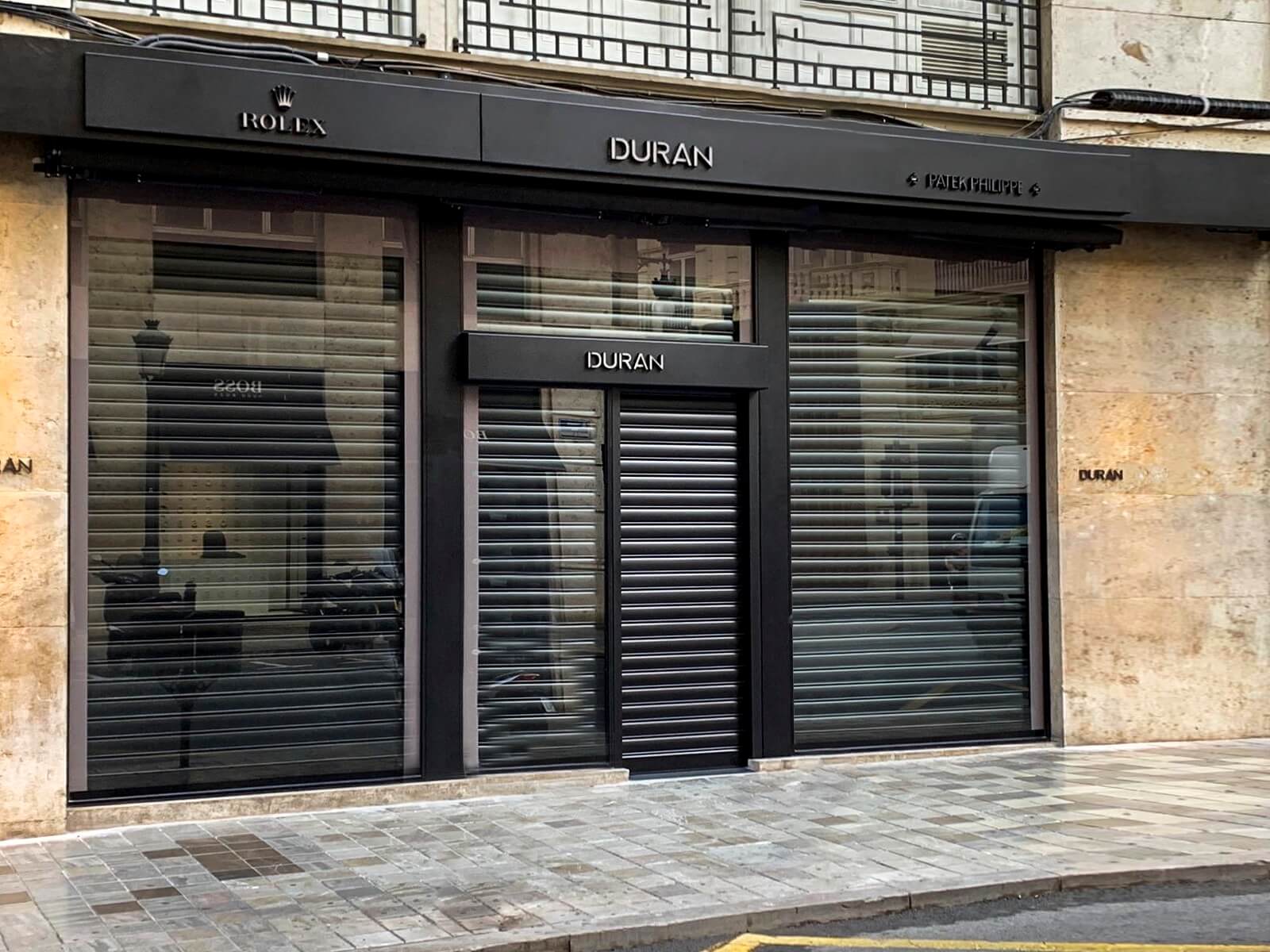 Maximum security self-locking roll-up closure model XT-230 from the brand Portalum with curved lines made of extruded aluminum alloy 6063-T5 (Aluminum, Silicon, Magnesium and Titanium) of great resistance. Roll-up door consisting of a curved main profile and an intermediate locking profile + Protect system, achieving an RC4 security level. These profiles, thanks to their innovative design, are linked to each other, allowing that, when the door is completely lowered, the intermediate profile is rotated on the guides, producing a lock on both sides of the door. This self-locking mechanism of the profiles provides the model with maximum security against intrusions and theft. The XT-230 model allows a wide range of finishes for customer choice with blind, combined and die-cut versions with or without methacrylate.