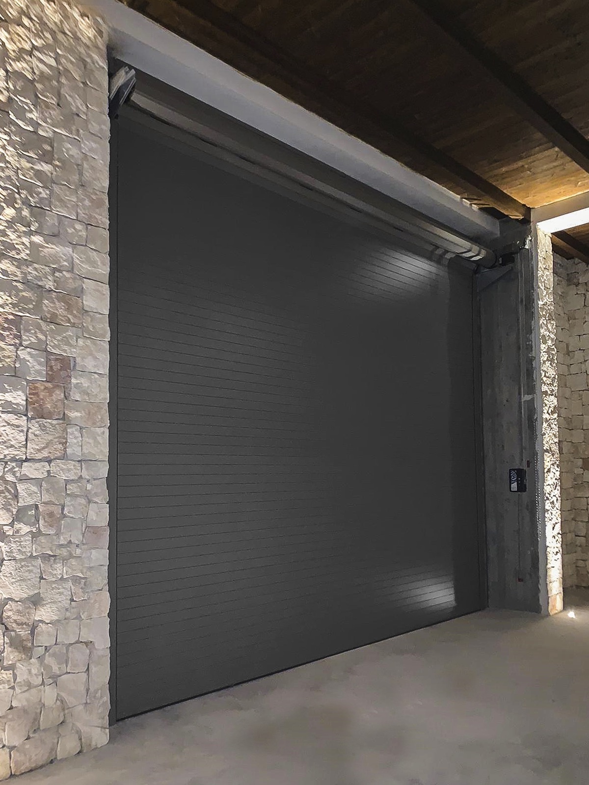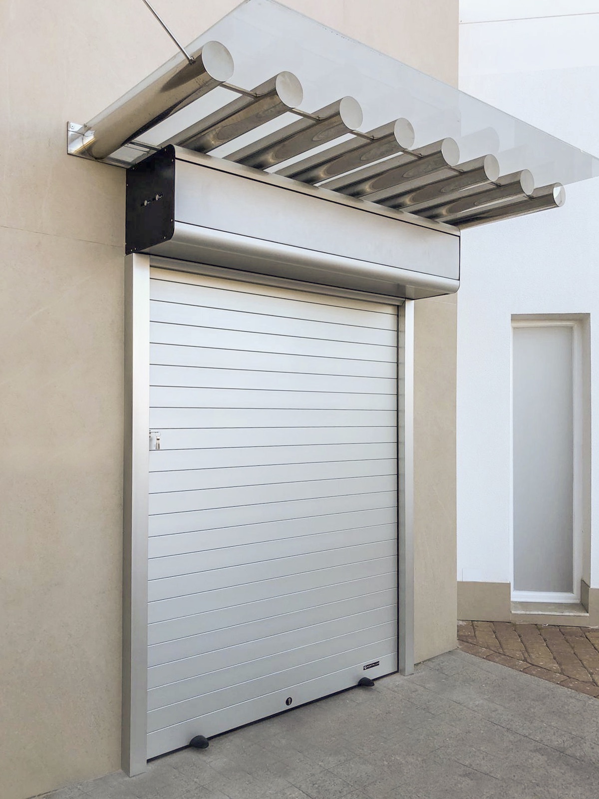 Roll-up door in extruded aluminum of high strength 6063-T5 alloy (Aluminum, Silicon, Magnesium and Titanium) from the brand PORTALUM Model XT-80. Made with straight design profiles and double-wall geometry, its main measurements being 80×15.4 mm and its general thickness of 1.4 mm. The roll-up door is complemented by side nylon plugs that prevent movement between the slats and possible operating noises, a reinforced double-walled lower plinth with rubber weatherstripping for better watertightness and greater adjustment to the sill. In addition to the aluminium side guides, with anti-friction polyamide weatherstripping, to prevent friction and wear of the slats. The XT-80 model offers great versatility of finishes and the combination of the XT-79 perforated plank with and without methacrylate, mixed and microperforated that will be able to meet all aesthetic requirements.
