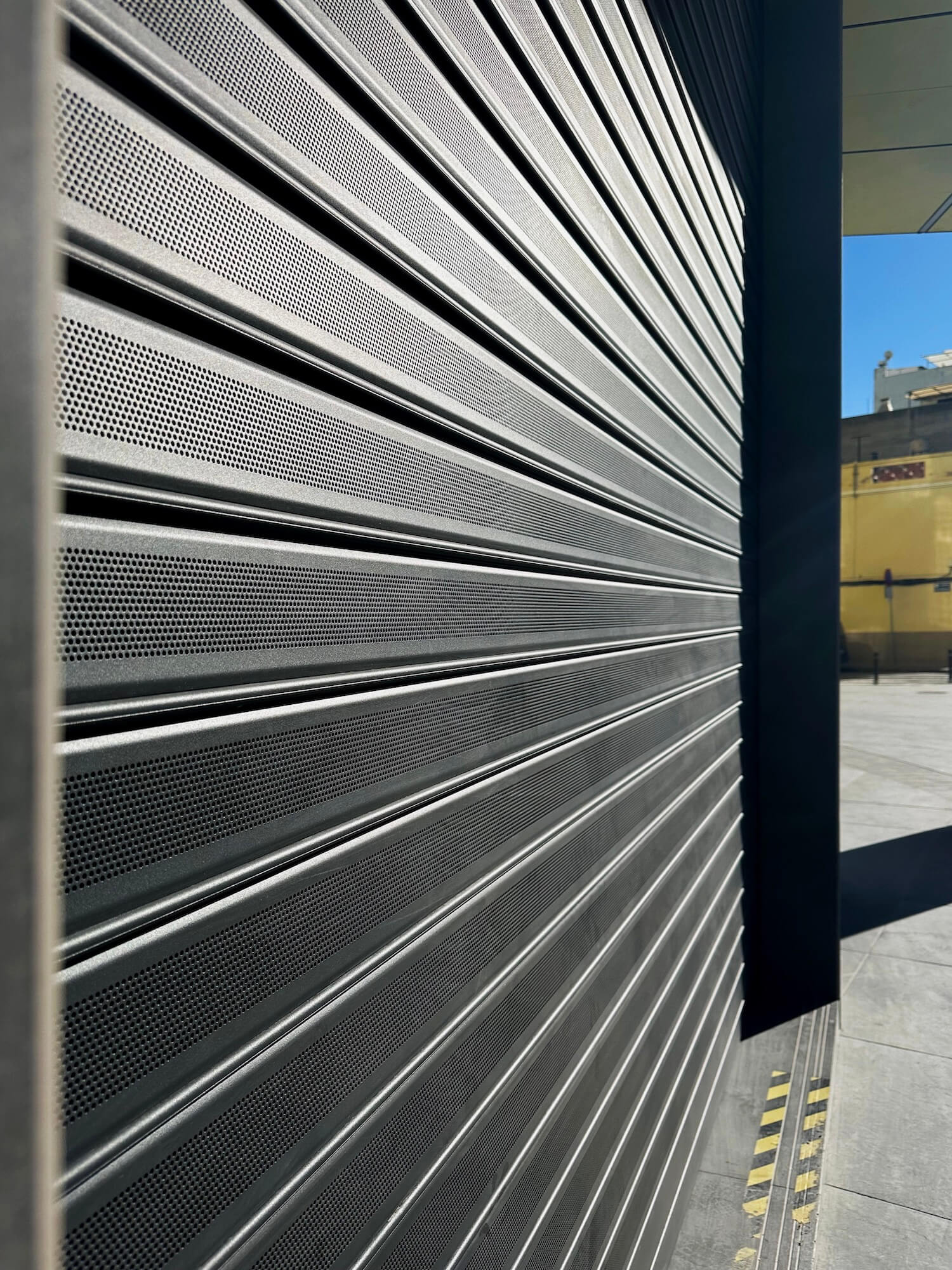 Lame droite de haute sécurité en aluminium extrudé à simple paroi, avec des micro-perforations qui permettent une grande visibilité des locaux lors de l’éclairage de l’intérieur. Le système autobloquant offre un très haut niveau de sécurité.
