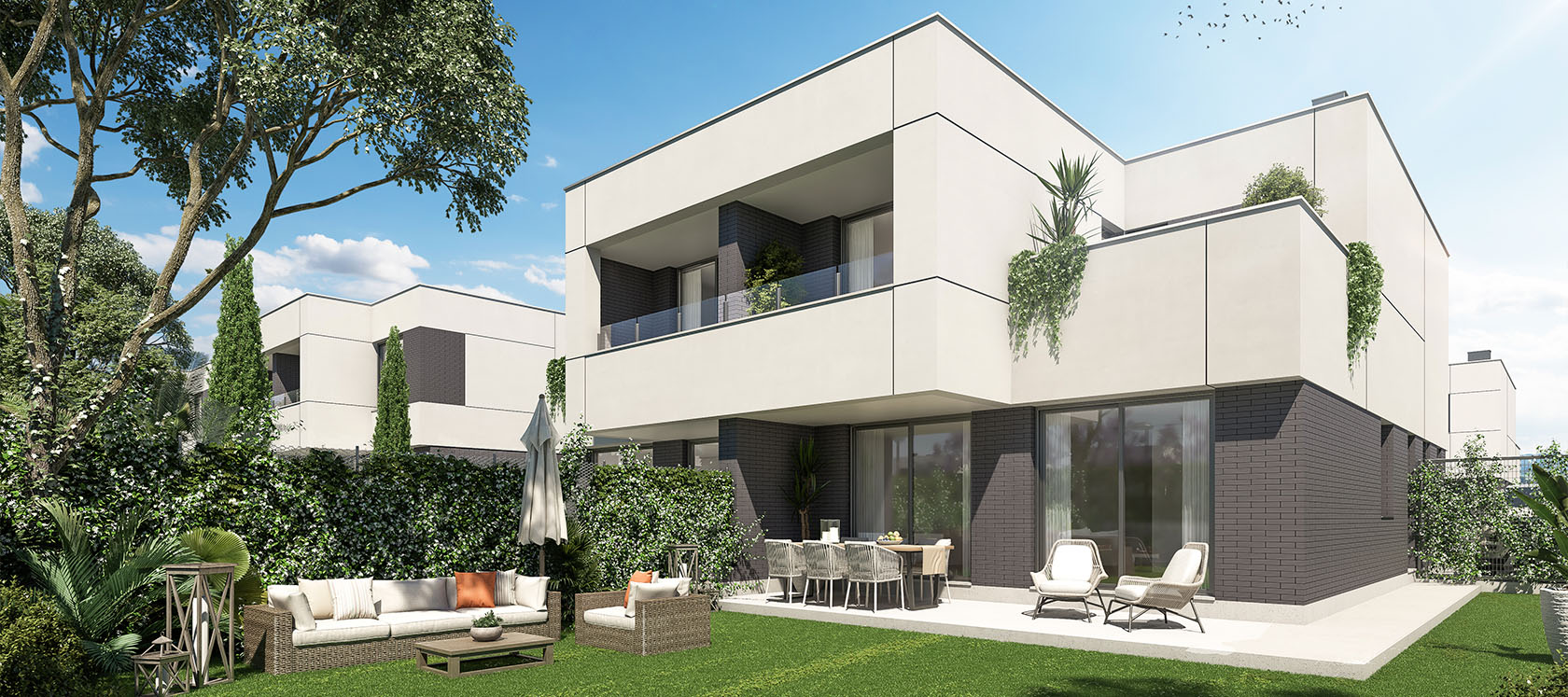Célere Villaviciosa de Odón II es una promoción residencial de 48 viviendas pareadas de 3 y 4 dormitorios distribuidas en dos planta. Son viviendas exclusivas en las que se han instalado cancelas/puertas enrollables otorgando un diseño elegante junto con la seguridad de la vivienda.